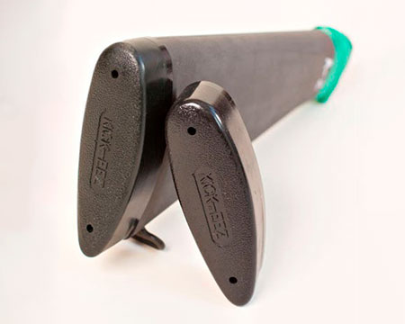KICK-EEZ Sorbothane Recoil Pads absorb more impact and recover fully before the next shot. KICK-EEZ Pads are made of solid Sorbothane, which allows them to be custom ground for a perfect fit. KICK-EEZ Sorbothane Recoil Pads are available in Pre-Fit, Grind to Fit, Slip On, and even patriotic red, white, and blue pads.