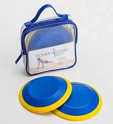 A pair of SORBO-EASE Pads is packaged in a reusable, zippered mesh carry and storage bag along with an introductory user guide.