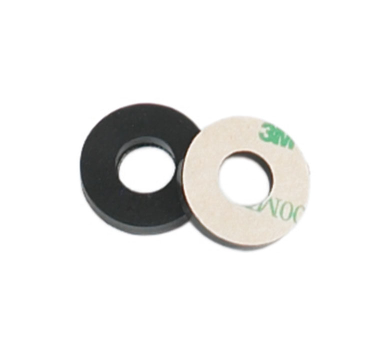 Sorbothane® Washers with Pressure Sensitive Adhesive (PSA) are designed to isolate vibration and absorb shock. Using two bushings together or a bushing and washer(s), you can create a floating bolt that isolates the unit from any metal-to-metal contact. Different durometers allow for different spring rates. Load ratings assume a 10%-20% deflection of the material. This deflection is achieved by a combination of system weight and torquing of the connecting bolts. Do not over torque the bolts as this defeats the intended vibration isolation and shortens bushing life. Use a high-quality (thread deforming) lock nut. Bushings may be used in tension connections.